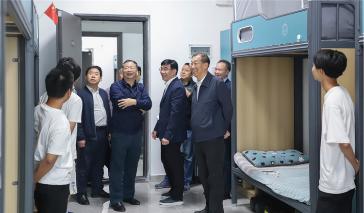 调研组一行首先参观了由知音集团投资兴建的新教学生活区“银杏苑”。作为领办的民生实事项目,在驻部纪检监察组的关心和支持下,学生公寓如期投入了使用。童江同志走进学生寝室,与学生亲切交流,关心慰问刚入学的2023级新生,了解学生思想、学习、生活,详细询问了学生入住新楼的体验和对新环境的适应情况。走访中,学生对银杏苑整洁有序的生活环境、便捷高效的智慧化管理、优质的学习环境非常满意,对大学生活充满信心。童江同志对集团高质高效完成新楼建设,坚持以学生为本,为学生学习生活提供优质保障的做法表示充分肯定。