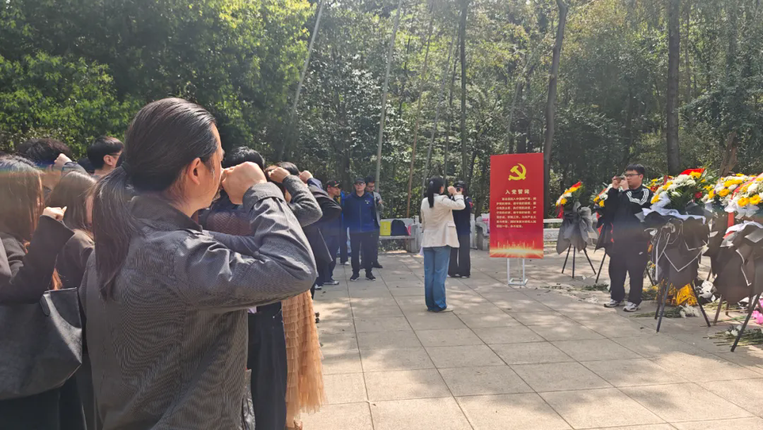 重温入党誓词,唯以初心践誓。“我志愿加入中国共产党,拥护党的纲领……”全体师生高举右拳,重温入党誓词。铿锵誓言回荡在陵园上空,与先烈们的革命精神交相辉映。